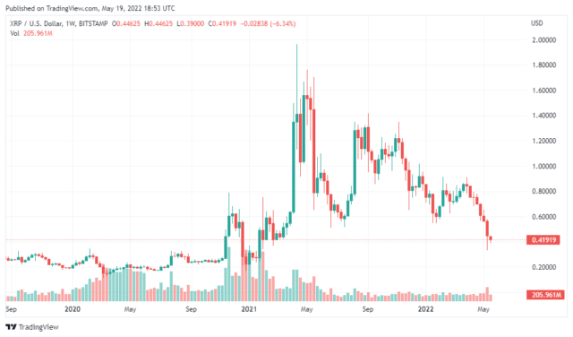 XRP ve diğer piyasa hareketlileri, ayıların gazabıyla yüzleşmeye devam etti. Altcoin son 24 saatte önemli ölçüde düştü. Geçen hafta kazanç sağladı, ancak boğalar geri döndüğü için madeni para kazandığını kaybetti.